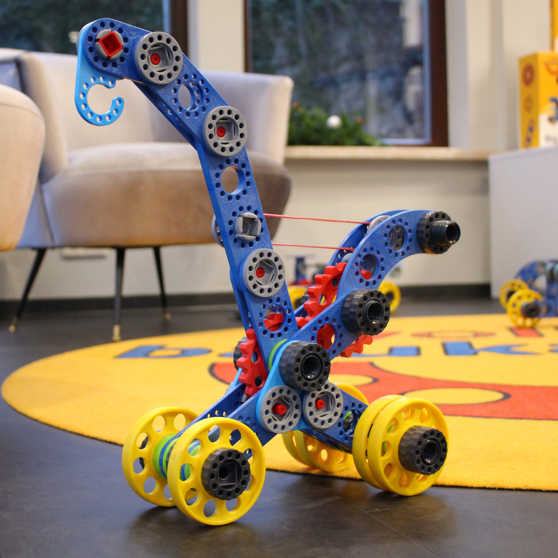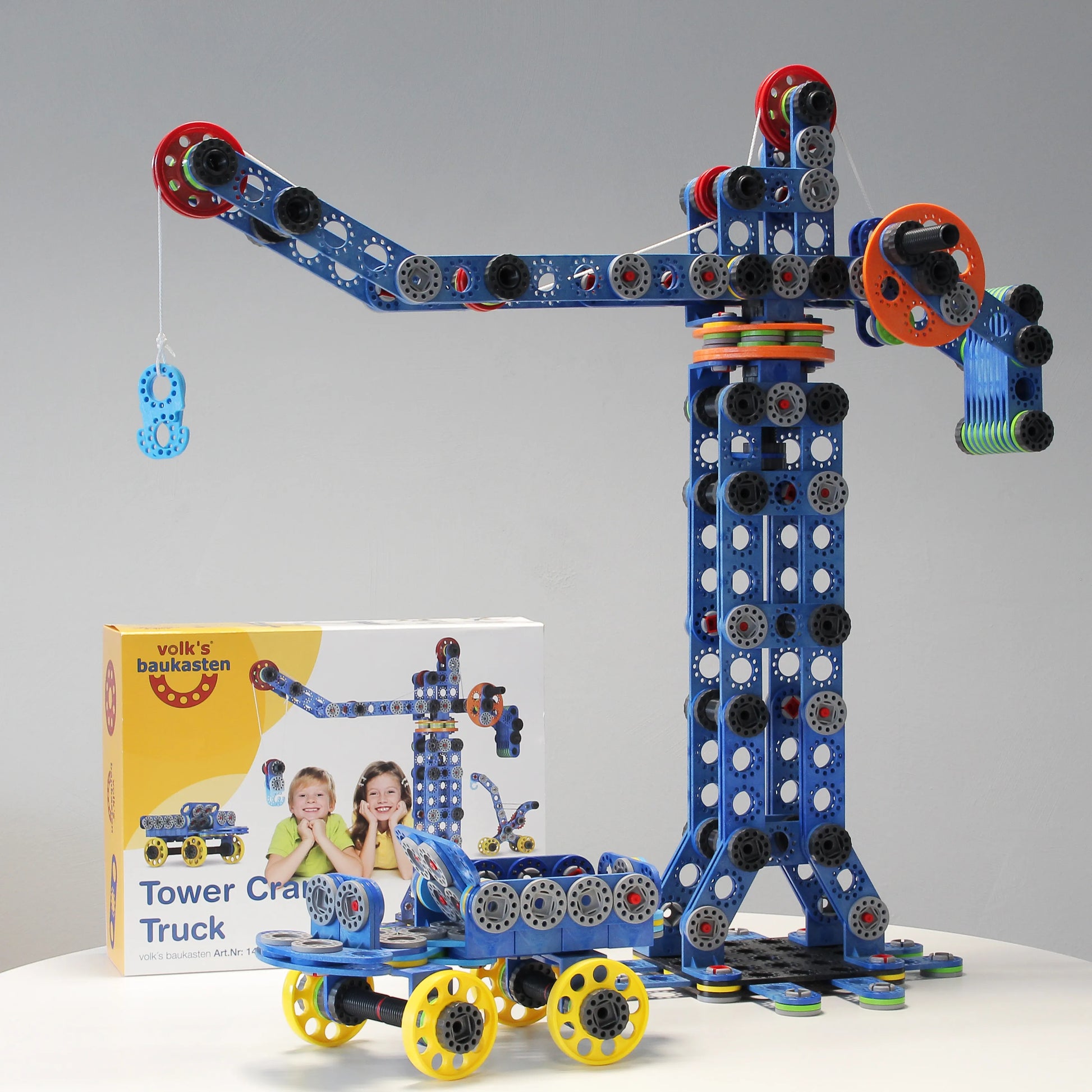 Viele weitere Modelle wie z.b. Pick-up Crane sind möglich. Alle Bauteile und volk's baukasten®-Sets können miteinander kombiniert und erweitert werden. Die großen Bauteile sind handlich und haben eine besonders angenehme Haptik. Darüber hinaus fördern diese Kreativität, Geschicklichkeit, Feinmotorik und Auge-Hand-Koordination.